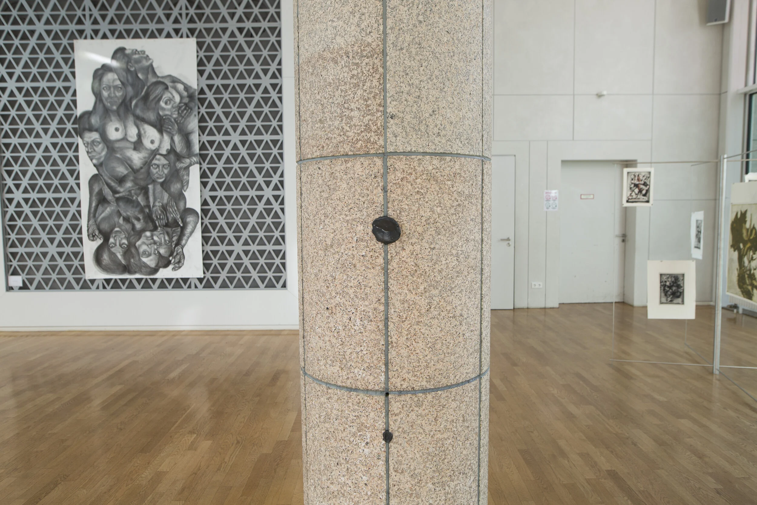 Das war eine Verknüpfung aus mehreren Dingen. Der erste Instinkt war, mit der Balustrade im Foyer des Ignatz Bubis-Gemeindezentrum zu arbeiten, da ich es spannend fand, den Balkon auch inhaltlich in der Fokus einer Installation zu stellen. Dann habe ich mir die Architektur des Hauses in Lwow, wo ich aufgewachsen bin, mittels google maps angeschaut. Mich haben die Stuckaturen des Hauses schließlich auf den Weg dieser langen Relief-Installation gebracht. Wegen der Formenähnlichkeit spielen da noch die Vasen aus der Vitrine meiner Großmutter mit hinein. So fügte sich alles zusammen.