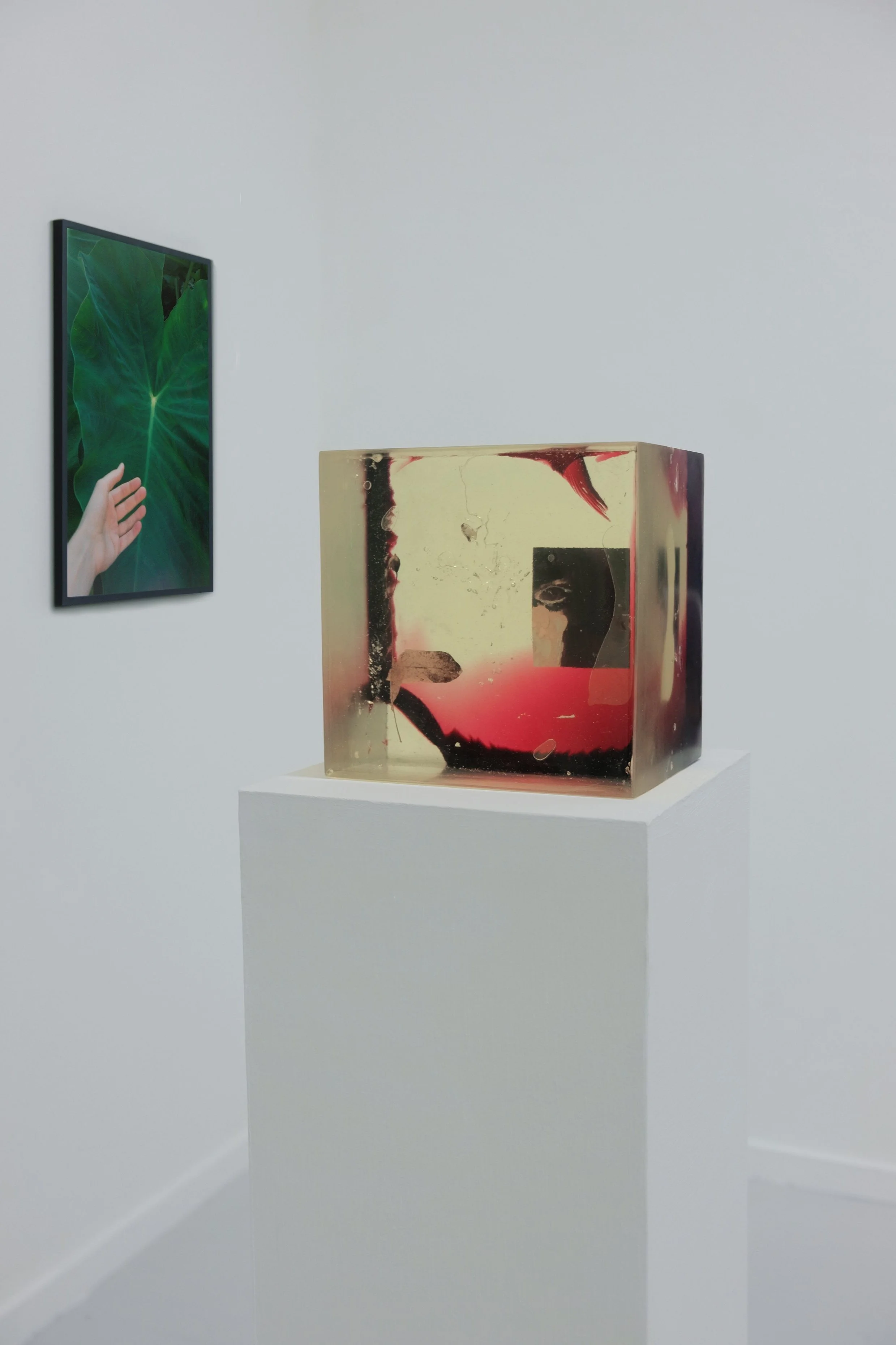 Allure and Flaws, 2023, Collage in Epoxidharz, 21 x 20 x 15 cm (vorne)