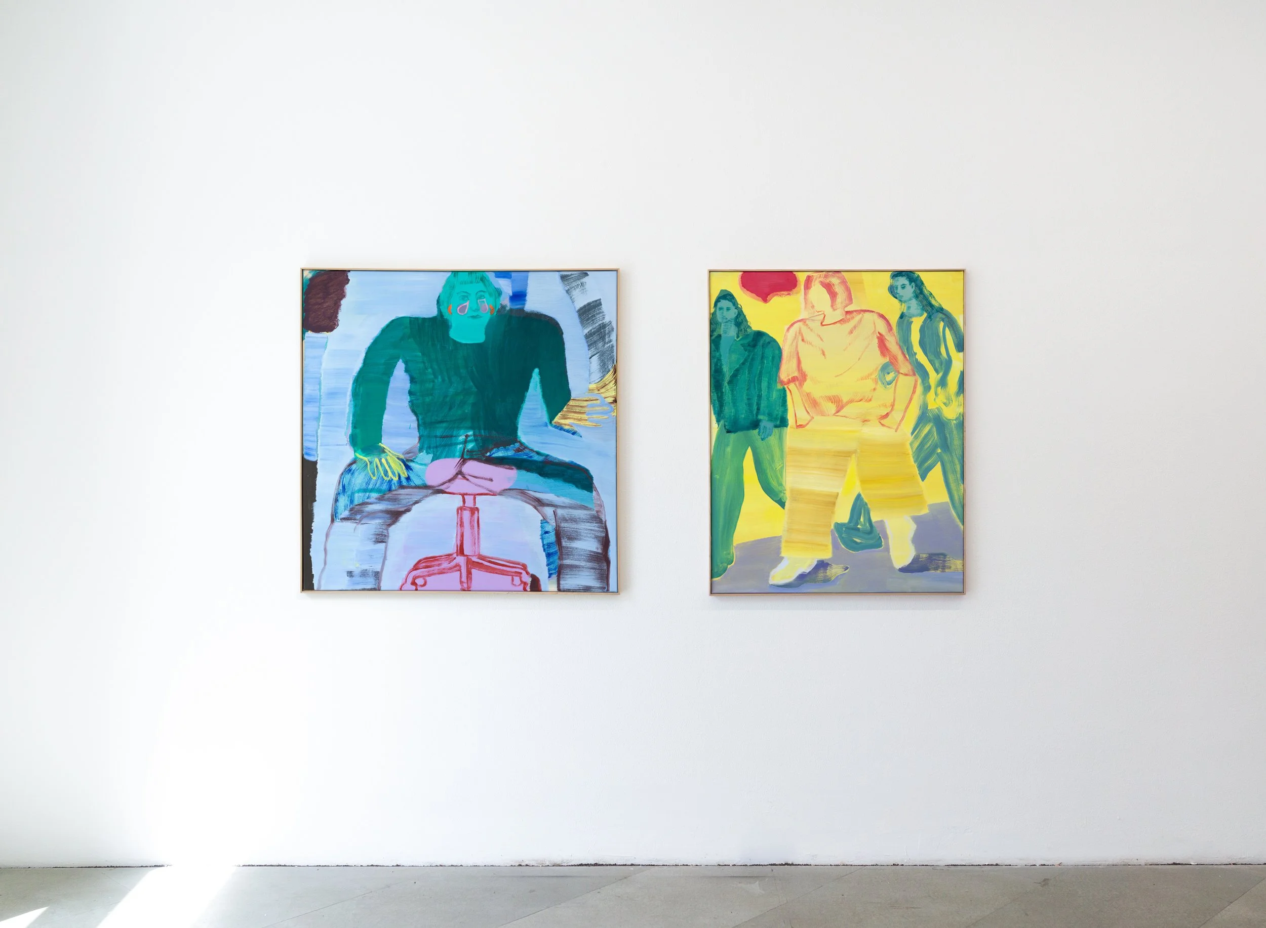 Sweaty Hands, 2024, Öl auf Leinwand, 100 × 100 cm (links); Zitronen, 2024, Öl auf Leinwand, 100 × 80 cm
